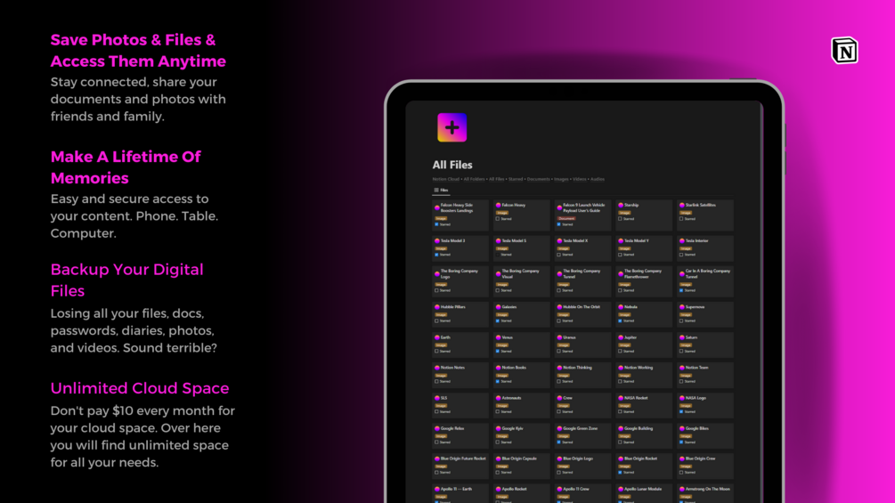 Save Your Photos And Files To Notion Cloud And Access Them From Any Device, Anywhere.